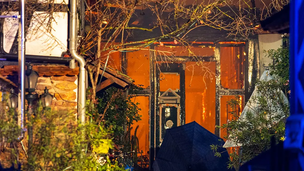 Ein Großaufgebot der Feuerwehr ist die ganze Nacht im Einsatz. Drei Rettungswagen werden zum Glück nicht gebraucht.