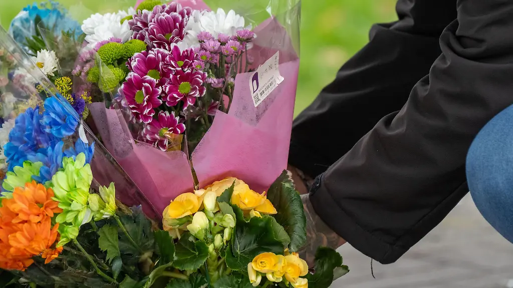 Trauerort mit Blumen und Kerzen