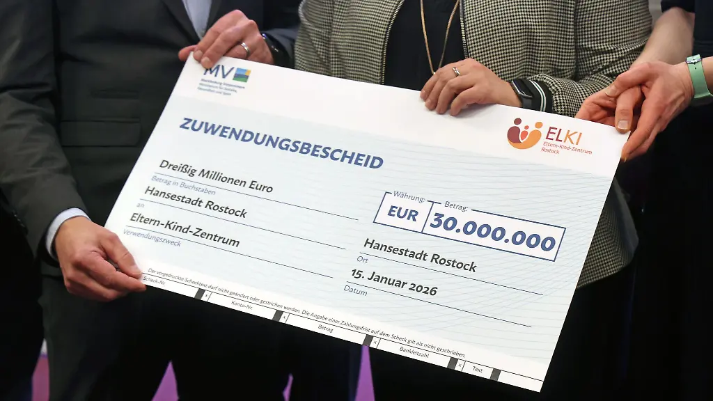 Rostock (dpa/mv) - Das geplante gemeinsame Eltern-Kind-Zentrum Rostock (ELKI) der Universitätsmedizin Rostock und des Rostocker Südstadtklinikums hat einen ersten Förderbescheid über 30 Millionen Euro erhalten. Das neue Zentrum werde die Versorgung von Neugeborenen, Kindern und Jugendlichen in Rostock und ganz Mecklenburg-Vorpommern verbessern, so Gesundheitsministerin Stefanie Drese (SPD) bei der Übergabe des Bescheids über Fördermitteln des Landeskrankenhausgesetzes. "Wir investieren voller Überzeugung 30 Millionen Euro in die Spitzenmedizin am Standort Rostock und damit in die Zukunft unserer Kinder."