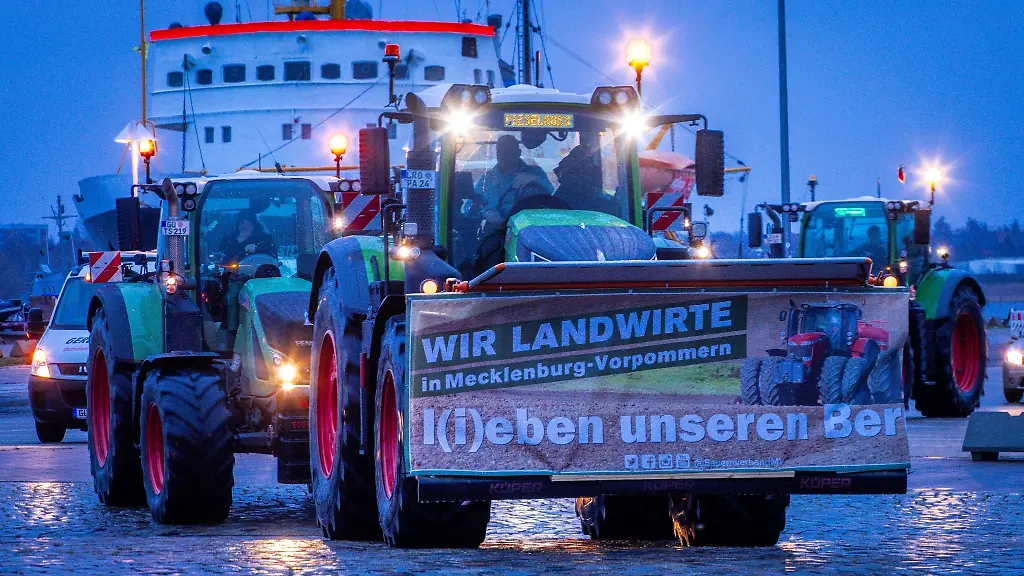 Nach einer Sternfahrt unter anderem von der Insel Rügen aus bewegten sich am Montagmorgen nach Polizeiangaben etwa 250 Fahrzeuge als Korso durch Stralsund. Ziel sei das Landratsamt, teilte die Polizei auf X mit. Verkehrsteilnehmer sollten den Bereich umfahren.