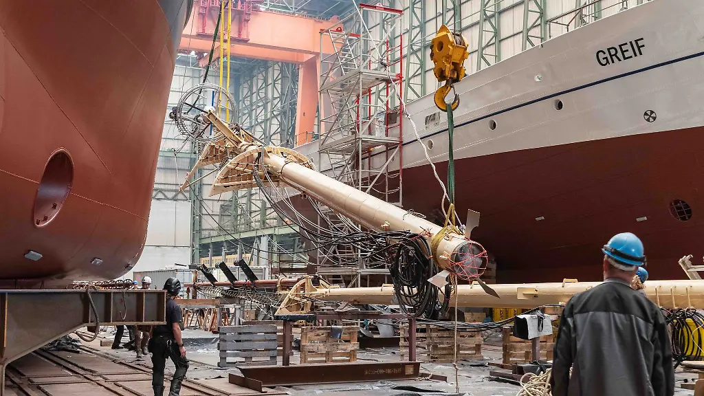 Stahlseile würden gespannt, die die Masten künftig stabil auf dem Schiff halten. Auch der vordere Ausleger – der Bugspriet -, an dem später die Vorsegel befestigt werden, sei bereits montiert. Zudem würden die neuen Aufbauten hergestellt.