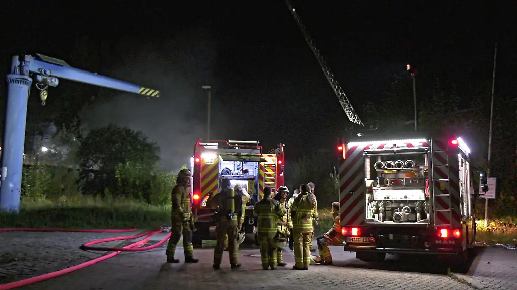 Die etwa 1.000 Quadratmeter große Halle wurde den Angaben zufolge bei dem Feuer am Samstagabend vollständig zerstört. Rund 70 Feuerwehrleute waren im Einsatz, um die Flammen zu löschen. Auch der Kriminaldauerdienst sei vor Ort gewesen, teilte die Polizei weiter mit.