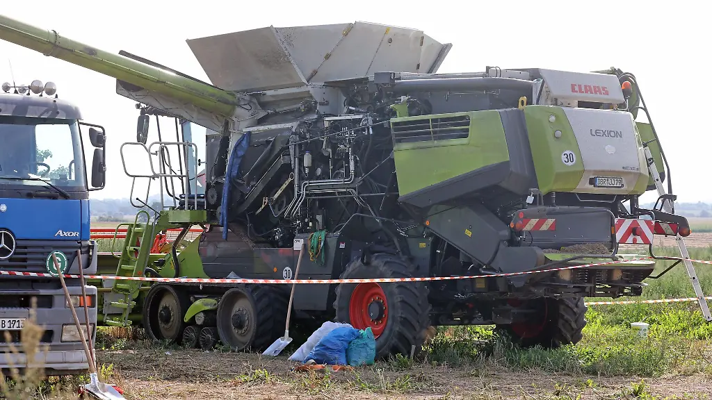 Sie wollten früheren Angaben zufolge die Bunkeranlage des Mähdreschers leeren. Dabei hätten sie eine technische Störung festgestellt. Der Landwirt habe diese mit einer Schaufel beseitigen wollen und sei dabei in den Trichter des Kornspeichers gerutscht. Die Ermittler vermuteten, dass der Sicherheitsmechanismus des Mähdreschers umgangen worden sein könnte. Denn wenn sich niemand auf dem Fahrersitz befindet, schaltet sich die Maschine eigentlich aus.
