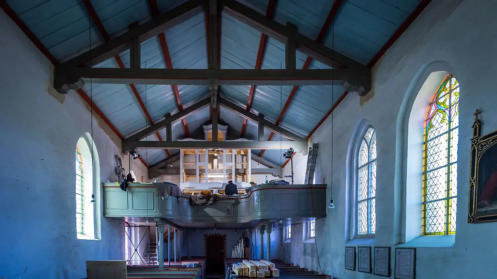 Pinnow (dpa/mv) - Die Dorfkirche in Pinnow bei Schwerin (Landkreis Ludwigslust-Parchim) hat eine neue Orgel. Die technische Montage sei größtenteils abgeschlossen, sagte Orgelbauer Christian Mrzik von der Orgelwerkstatt Wegscheider aus Dresden der Deutschen Presse-Agentur. Das Aufstellen des rund vier Meter hohen und drei Meter breiten Instruments habe drei Wochen gedauert.