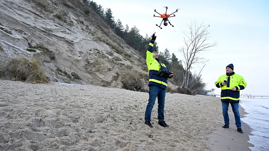 Sellin (dpa/mv) - Wegen witterungsbedingter Veränderungen der Steilküste in Sellin nimmt das Amt Mönchgut-Granitz diese verstärkt in Augenschein. Ein schon länger vorhandener Riss werde größer, sagte Amtsleiter Arne Fründt. Er sei etwa 50 Meter lang. Es habe sich eine 50 mal 20 Meter große Scholle gebildet, die irgendwann abzubrechen drohe. Als Konsequenz habe man den Weg oberhalb des Steilufers weiter ins Landesinnere verlegt und am Dienstag entsprechende Absperrungen errichtet. Am Nachmittag erkundete eine Drohne den Riss näher. Zuvor hatten Medien berichtet.
