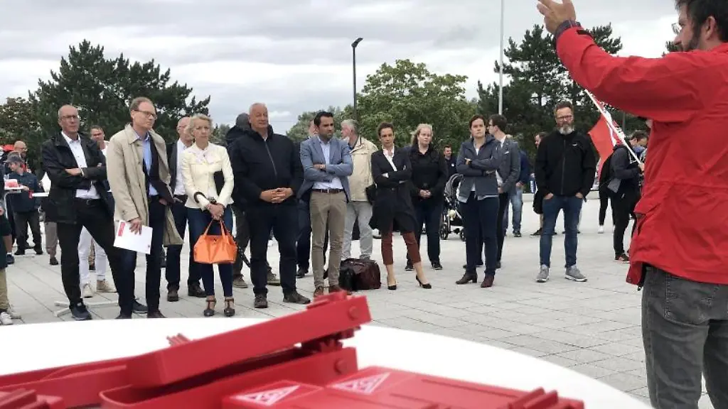 Unter ihnen waren neben Beschäftigten auch mehrere Politiker wie der Rostocker Oberbürgermeister. Claus Ruhe Madsen (parteilos) zeigte Verständnis für die Frustration Betroffener, warb aber dafür, statt mit Konfrontation, gemeinsam für den Hafen und die maritime Industrie zu kämpfen. Man sei schon seit längerem "unter Deck unterwegs". Mit der Landesregierung verhandele man etwa über eine Wasserstoffforschungsfabrik im Hafen. Das sei ökologisch sinnvoll und biete wirtschaftliche Perspektiven.