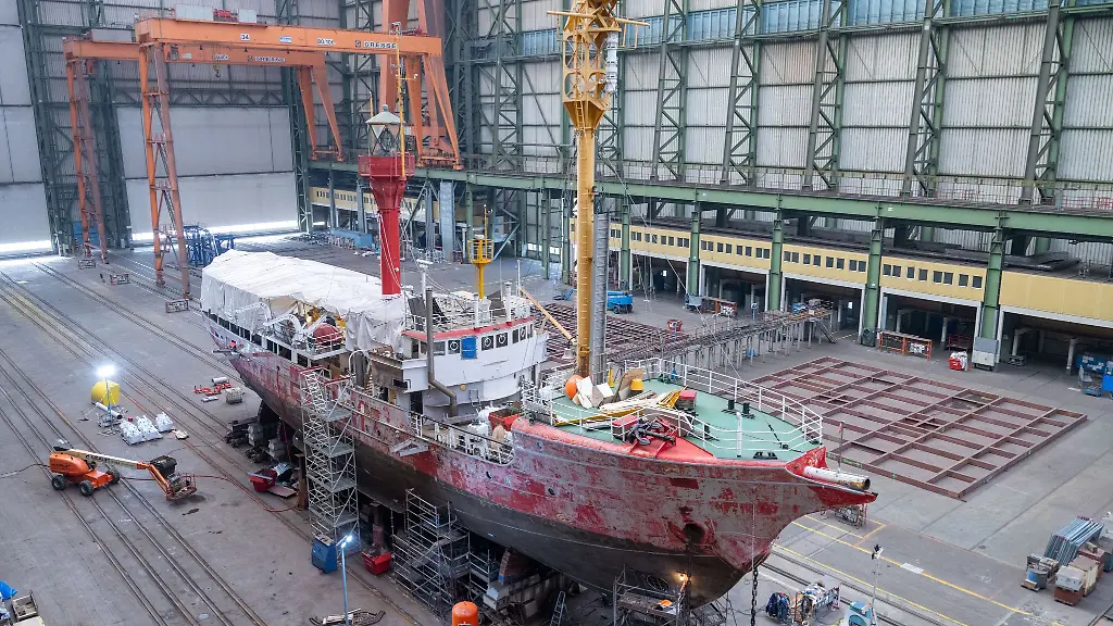Werfthalle in Stralsund nach Bleibelastung gereinigt