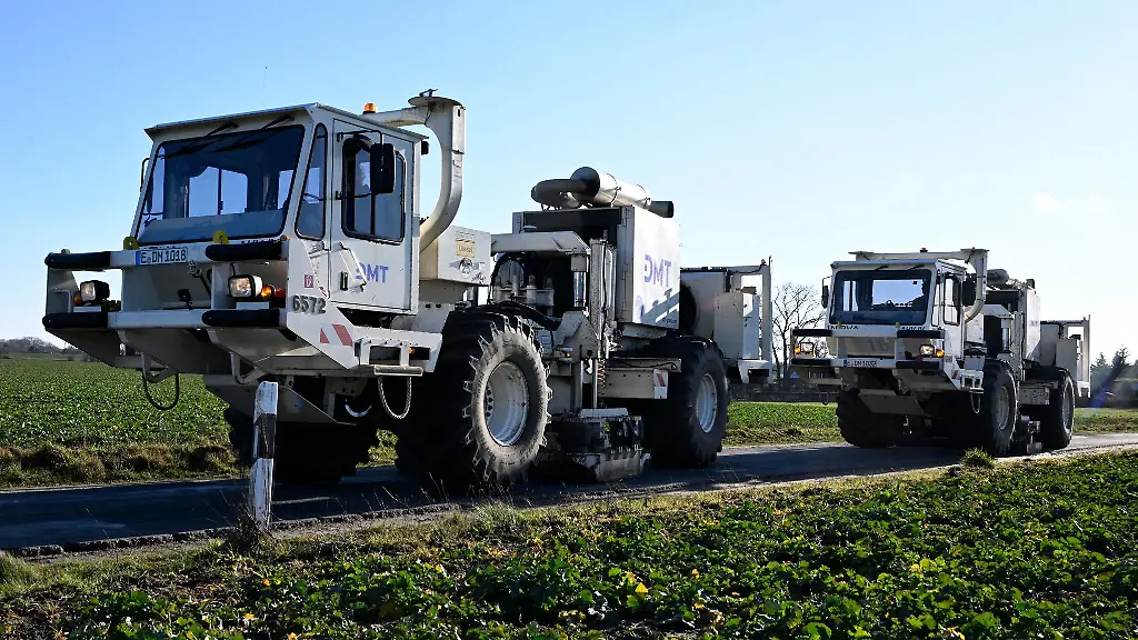 Kröslin (dpa/mv) - Auf den Äckern rechts und links der kleinen Straße in der Nähe des vorpommerschen Orts Kröslin zittern die Blätter der Pflanzen, so stark vibriert der Boden. Gerade haben die beiden rund 27 Tonnen schweren und 10 Meter langen Erkundungsfahrzeuge wieder eine Art Rüttelplatte auf die Fahrbahn gesenkt und schicken nun Schallwellen tief in den Untergrund. Sie ermöglichen eine Art Ultraschall-Bild, das bis 4.000 Meter in die Tiefe reicht. Es soll Auskunft über das Vorkommen eines derzeit in Deutschland nicht geförderten Bodenschatzes geben: Helium.