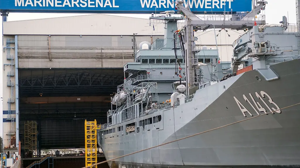 Das Trockendock des Marinearsenals Warnowwerft ist insgesamt 320 Meter lang und 54 Meter breit. Damit könnten dort sämtliche Einheiten der Deutschen Marine gedockt werden. Der Bund hatte die Anlage nach der Insolvenz der MV-Werften im Sommer 2022 gekauft. Das Arsenal setzt mit rund 500 Beschäftigten dort planmäßig vier Marineschiffe im Jahr instand.