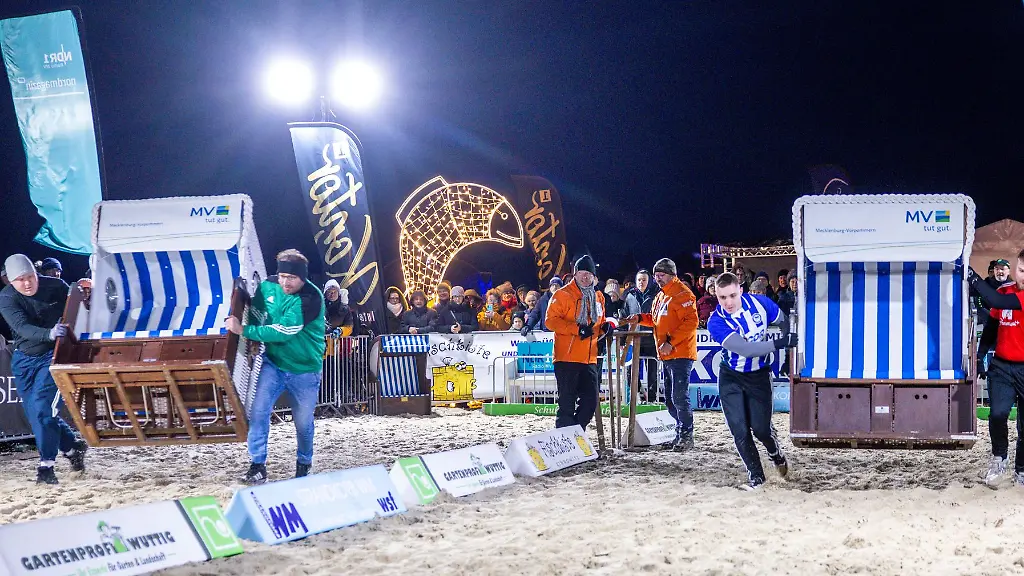 Eisiger Sand, Laser-Ziellinie und Feuer-Effekte: Auf Usedom kämpfen Teams um die Strandkorb WM. Letztes Jahr ein Team den bestehenden Rekord zumindest erreicht. Wird er dieses Mal geknackt?