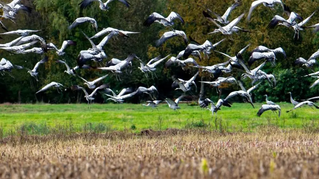 Kraniche überqueren Norddeutschland zwei Mal im Jahr: Im Frühjahr fliegen sie aus ihren Überwinterungsgebieten in Spanien, Frankreich und Nordafrika in die Brutgebiete nach Skandinavien, Finnland, ins Baltikum, nach Polen und in Teile Russlands. Im Herbst kehren sie in die Mittelmeerregion zurück. Auf ihrem Weg in Richtung Westen sammeln sich die Zugvögel zunächst in der Rügen-Bock-Region in Vorpommern. Dort wurde in der vergangenen Woche die Rekordzahl von 86 000 Tieren gezählt.