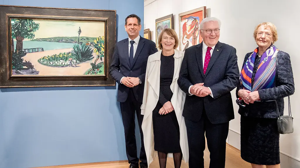 Zuvor hatte der Bundespräsident mit seiner Frau Elke Büdenbender, Niedersachsens Ministerpräsident Olaf Lies (SPD) und Kunsthallen-Gründerin Eske Nannen die Jubiläumsausstellung "Bilder, die wir lieben" besucht.