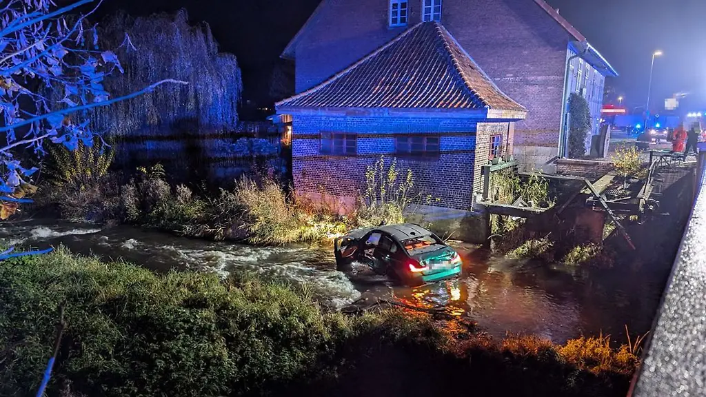Rotenburg (dpa/lni) - Am Donnerstagabend ist ein Auto in Rotenburg (Wümme) durch ein Brückengeländer gebrochen und in die Wiedau, einen Nebenfluss der Wümme, gefahren. Wie ein Sprecher der Polizei mitteilte, kam das Auto gegen 23 Uhr in einer Rechtskurve von der Fahrbahn ab und stürzte in den Fluss. Der Fahrer und sein Beifahrer, beide Anfang 20, wurden leicht verletzt. Sie konnten sich selbstständig aus dem Auto befreien.