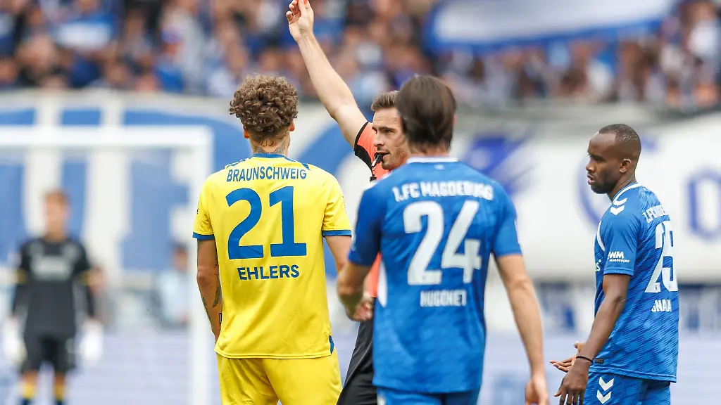 In der 54. Minute hatte Ehlers am Sonntag nach einem Foul an Marcus Mathisen Rot von Schiedsrichter Tom Bauer gesehen. Die Eintracht gewann zum Auftakt der Zweitliga-Saison in Unterzahl durch einen späten Treffer von Mehmet Can Aydin mit 1:0 beim FCM.