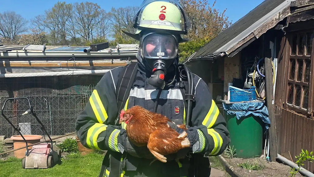 In einer Schrebergartenkolonie in Celle brennt es. Vier bis fünf Lauben werden zerstört – doch mehrere Hühner haben Glück im Unglück.