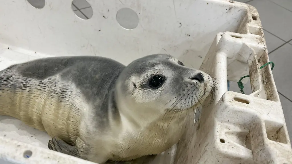 Mit einer speziellen Transportbox sammelten die Einsatzkräfte den Seehund ein, um ihn später einem Mitarbeiter der Seehundstation Norddeich zu übergeben. Verletzt schien der Heuler den Angaben nach nicht.