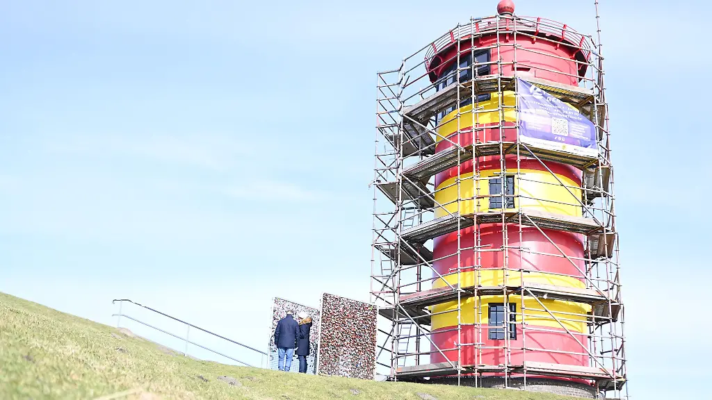 Pilsum (dpa/lni) - Eines der bekanntesten Wahrzeichen Niedersachsens hat in den vergangenen Tagen einen neuen Farbanstrich bekommen – ein spezieller Metalllack sorgt dafür, dass der Pilsumer Leuchtturm in Ostfriesland trotz rauer Nordseeluft auch weiterhin rot und gelb strahlt. Den Anstrich übernahmen Mitarbeiter der Deichacht Krummhörn (Landkreis Aurich). "Wir kennen ja den Hype um den Turm", sagt der Rendant der Deichacht, Frank Rosenberg. "Wir machen das daher mit ganz viel Freude im Rahmen unserer Möglichkeiten."