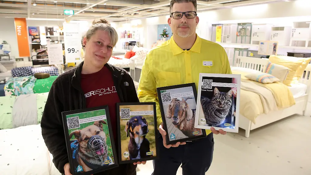 Seit einer Woche läuft die Aktion, die Ikea gemeinsam mit den Tierheimen in Bremen und Brinkum aufgelegt hat. In der Möbelausstellung finden Kunden Tierporträts mit Infos zu den Abgebildeten – und einem QR-Code für weitere Details. Damit, so hofft Ross, die Kunden die Codes einfach per Handy einscannen – und dann sagen: "Ja, das Tier könnte ich mir auf meiner eigenen Couch auch gut vorstellen."