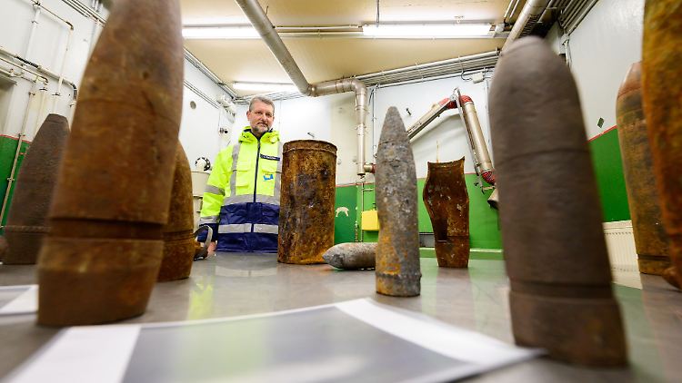 Sie sind vollkommen verrostet, zum Teil mit Senfgas gefüllt und könnten noch detonieren. Derzeit komme viel französische Munition zum Vorschein, die die Wehrmacht erbeutet hatte. Alles wird einzeln dokumentiert, bevor es unschädlich gemacht wird. Schories ist schon viele Jahre dabei, einen Unfall gab es bisher nicht, sagt er.