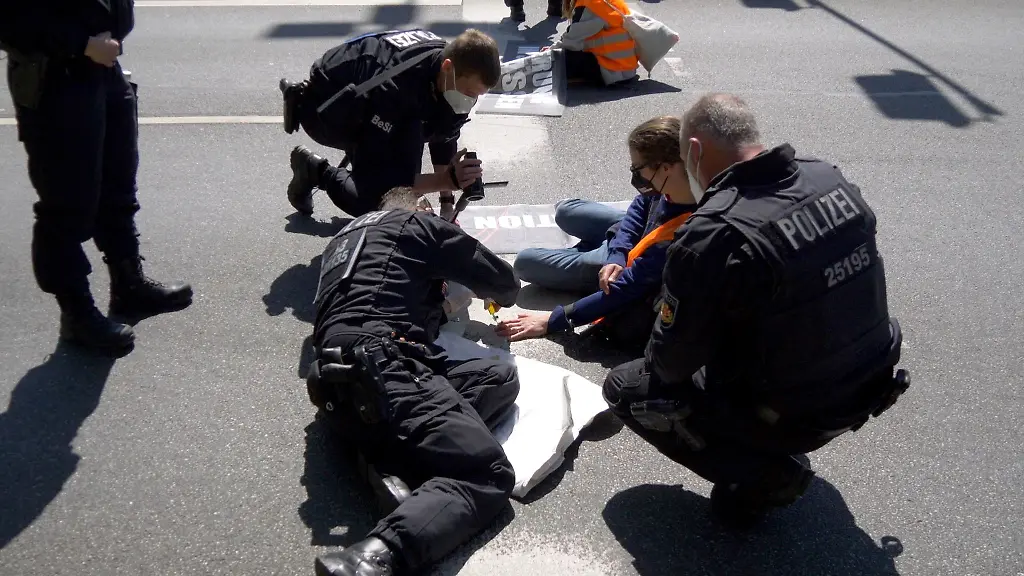 Unter Aufsicht eines Polizeiarztes lösten Einsatzkräfte die drei Personen, die sich mit den Händen festgeklebt hatten, von der Fahrbahn. Bei allen fünf Demonstranten wurden die Personalien festgestellt und Ermittlungen wegen Nötigung und Verstößen gegen das Versammlungsgesetz eingeleitet.