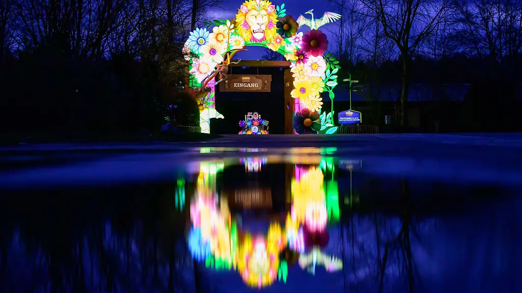 Bunte Lichter erhellen die dunkle Jahreszeit. Ein Tierpark in Niedersachsen hat 1.000 teils meterhohe Lichtobjekte aufgestellt.