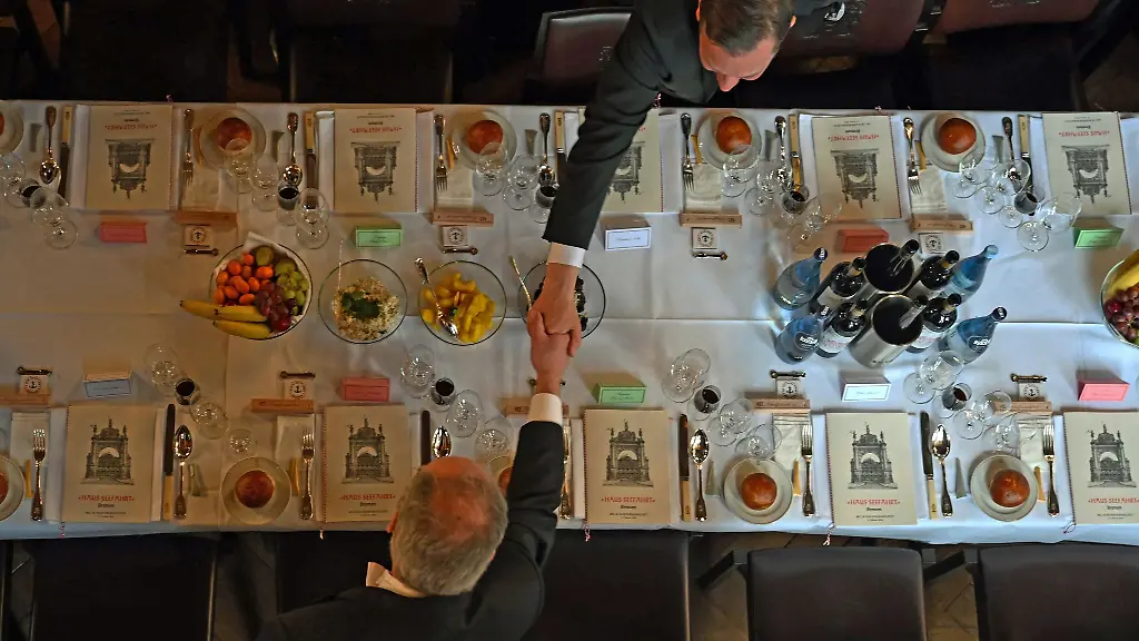 Bremen (dpa/lni) - Zahlreiche Herren in Frack oder Kapitänsuniform, dazwischen Frauen in edler Garderobe: Im Bremer Rathaus haben sich rund 300 Menschen zur Schaffermahlzeit zusammengefunden. "Bei diesem Treffen der Bremer Seefahrgemeinschaft, werden wir daran erinnert, dass Seehandel ein Beruf, eine Branche und sogar ein politisches Schlachtfeld sein kann", sagte Maersk-Chef Vincent Clerc laut Redemanuskript, der als Ehrengast geladen ist. Aber es sei weit mehr als das, betonte Clerc. "Er ist eine gemeinsame Geschichte, die Menschen und die Welt verbindet, den Austausch von Waren und Kultur fördert, Wohlstand und Wachstum anstrebt und diejenigen ehrt, die zur See fahren, um dieses Engagement aufrechtzuerhalten."