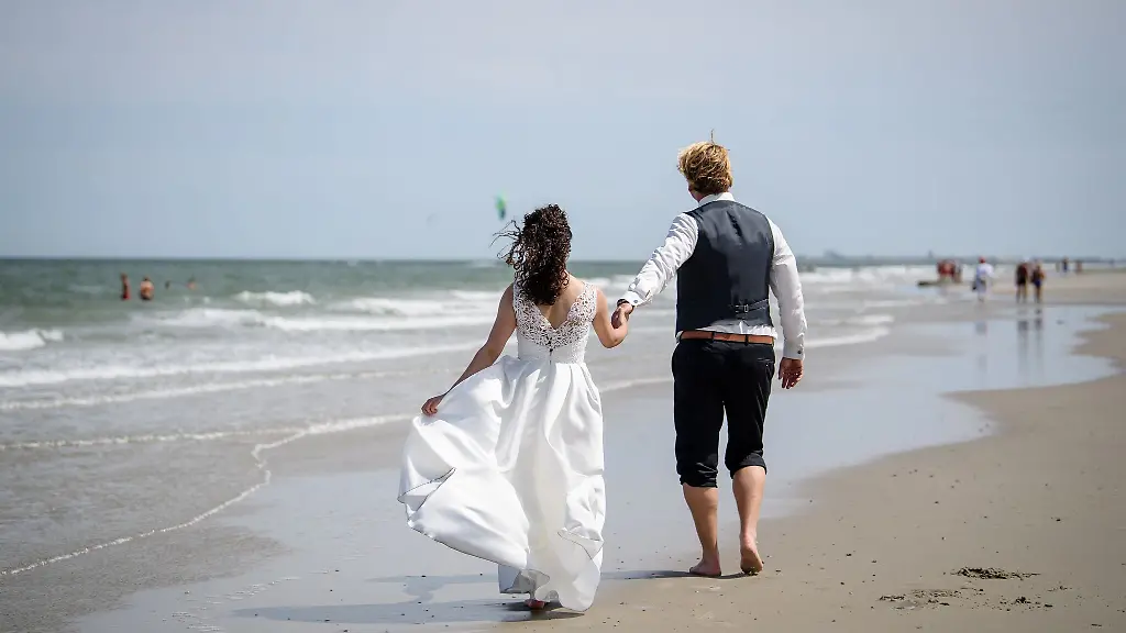 Ingo Steinkrauß, Standesbeamter auf Juist, ist stolz darauf, dass am 9. Mai bereits die 400. Strandhochzeit unter freiem Himmel geschlossen wurde. Seit Mai 2019 kann auf der Nordsee-Insel offiziell standesamtlich am Strand geheiratet werden - es gab schon Trauungen bei Sonnenaufgang oder Sonnenuntergang. Laut Steinkrauß sind Open-Air-Strandhochzeiten an keinem anderen Ort in Deutschland möglich.