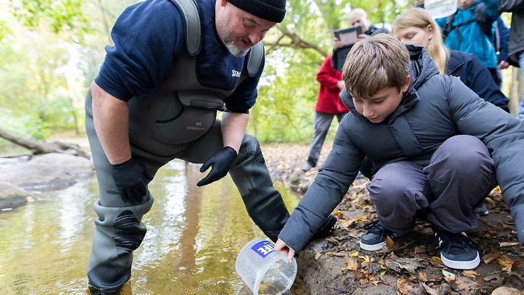 "Dann kann jedes Kind seinem Lachs einen Namen geben und der wird dann ausgesetzt", sagte Biologe Oliver Schaper, der das Projekt begleitet. Die restlichen Fische wurden in größeren Behältern zum Fluss gebracht.