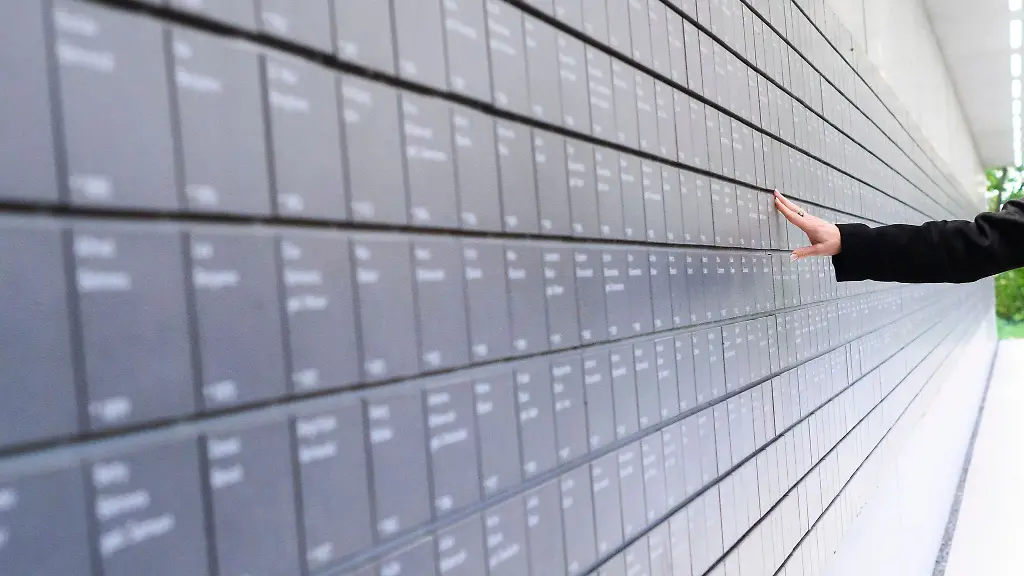 Kränze an "Wand der Namen" abgelegt