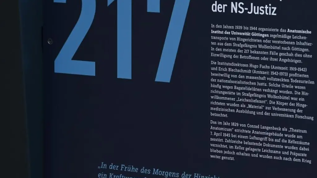 Göttingen (dpa/lni) - Mit einer Stele am Anatomischen Institut der Universität Göttingen soll an die Opfer der NS-Justiz erinnert werden. In den Jahren 1939 bis 1944 organisierte das Institut regelmäßige Leichentransporte von Hingerichteten oder gestorbenen Inhaftierten aus dem Strafgefängnis Wolfenbüttel nach Göttingen, wie die Stiftung niedersächsische Gedenkstätten mitteilte. In den meisten der 217 bekannten Fälle soll dies ohne Einwilligung der Betroffenen oder ihrer Angehörigen geschehen sein. Die Leichen seien für die Ausbildung von Ärzten seziert und auch für Forschungszwecke präpariert worden, erklärte die Leiterin der Gedenkstätte in der JVA Wolfenbüttel, Martina Staats.