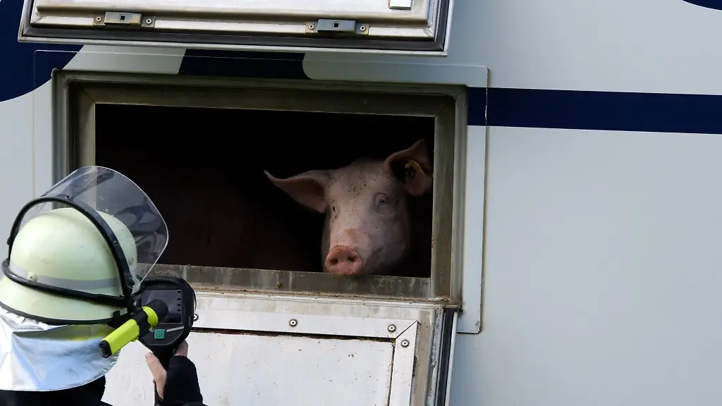 Den Angaben nach gibt es auch Verletzte. Ein Rettungshubschrauber sei alarmiert worden, hieß es weiter. Auf Bildern war zu sehen, dass auch ein Schweinetransporter an dem Unfall beteiligt war. Die Frontpartie der Zugmaschine war zerstört, die Scheibe gesplittert. Viele der Tiere im Anhänger waren äußerlich unversehrt.