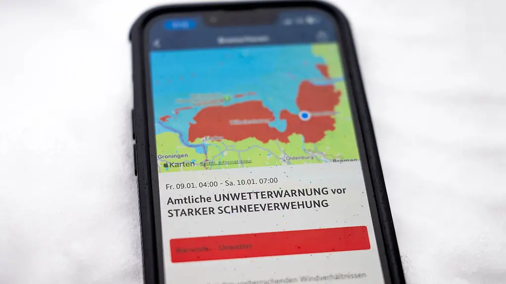 Wilhelmshaven (dpa/lni) - Der Deutsche Wetterdienst (DWD) warnt für nördliche Teile Niedersachsens für Freitag vor unwetterartigen Schneeverwehungen. "Es treten bei den vorherrschenden Windverhältnissen aufgrund der Neuschneemenge starke Schneeverwehungen auf", teilten die Meteorologen mit. Es werde verbreitet glatt. Es bestehe Gefahr für Leib und Leben durch eine stark erhöhte Schneedecke bis hin zu blockierten Verkehrswegen, hieß es.