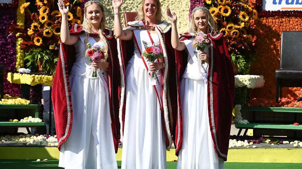 Wiesmoor (dpa/lni) - Beim Blütenfest in Wiesmoor in Ostfriesland ist Meike Deharde vom Publikum zur Blütenkönigin gewählt worden. Die 24-Jährige aus Wiesmoor erhielt ihren Titel auf der Freilichtbühne der Kleinstadt im Landkreis Aurich. Zur Prinzessin ernannt wurden die 20-jährige Joey Melina Folkerts und die 21 Jahre alte Antje Kopietz, beide kommen aus Großefehn im Landkreis Aurich. Die drei Frauen bilden nun das neue Wiesmoorer Blütenkönigshaus. Weitere Bewerberinnen oder Bewerber gab es nicht.