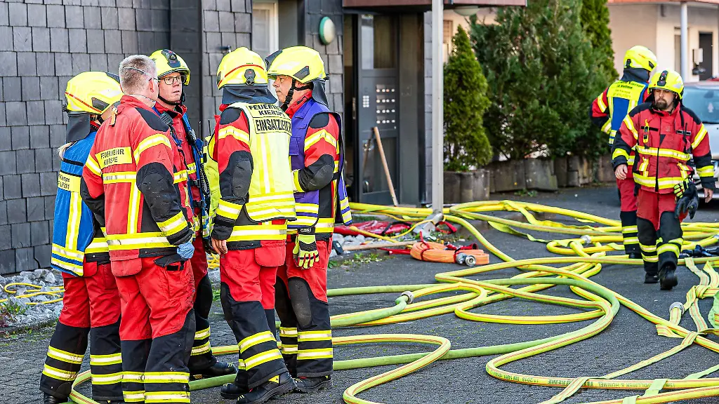 In der Kellerwohnung eines Mehrfamilienhauses im Sauerland bricht ein Brand aus. Die Feuerwehr bekämpft die Flammen. Ein junger Mann schwebt in Lebensgefahr.