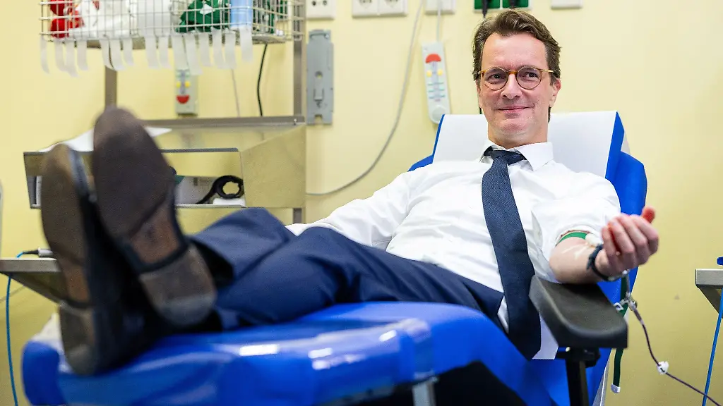 Nordrhein-WestfalenÄrmel hoch: Hendrik Wüst spendet Blut