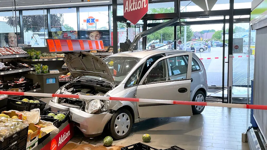 Nordrhein-WestfalenAuto kracht in Gemüsetheke von Lebensmittel-Discounter