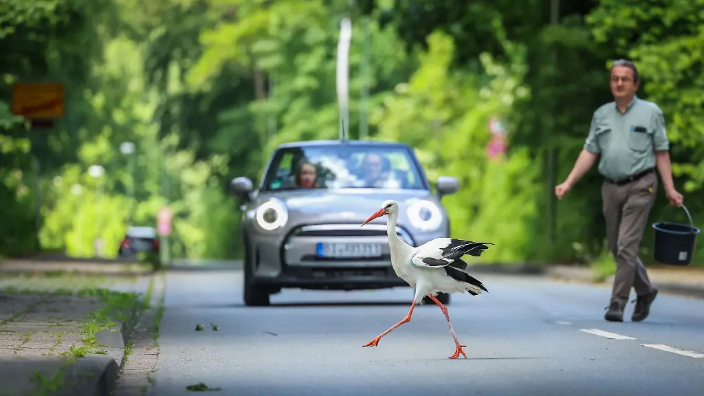 Bielefeld (dpa/lnw) - Ein wildlebender Weißstorch sorgt seit Wochen in Bielefeld für Aufsehen und teils auch für besorgte Gesichter. Herr Meier, wie der männliche Storch von den Pflegern des Tierparks Olderdissen genannt wird, ist in der ostwestfälischen Metropole kein Unbekannter. Einige Jahre lebte er glücklich mit Frau Meier auf einer Scheune des Heimat-Tierparks. Das Brutpaar sorgte regelmäßig für Nachwuchs - bis in diesem Frühjahr das Drama begann.