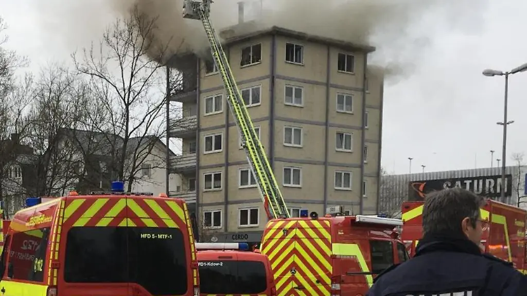 Der Brand war in einer Wohnung im obersten Stockwerk ausgebrochen. Rund 50 Feuerwehrleute kämpften viele Stunden gegen die Flammen, die dann in der Nacht im Fahrstuhlschacht des Hauses neu aufloderten. Am Vormittag wagten sich erste Kräfte vorsichtig in das Gebäude.
