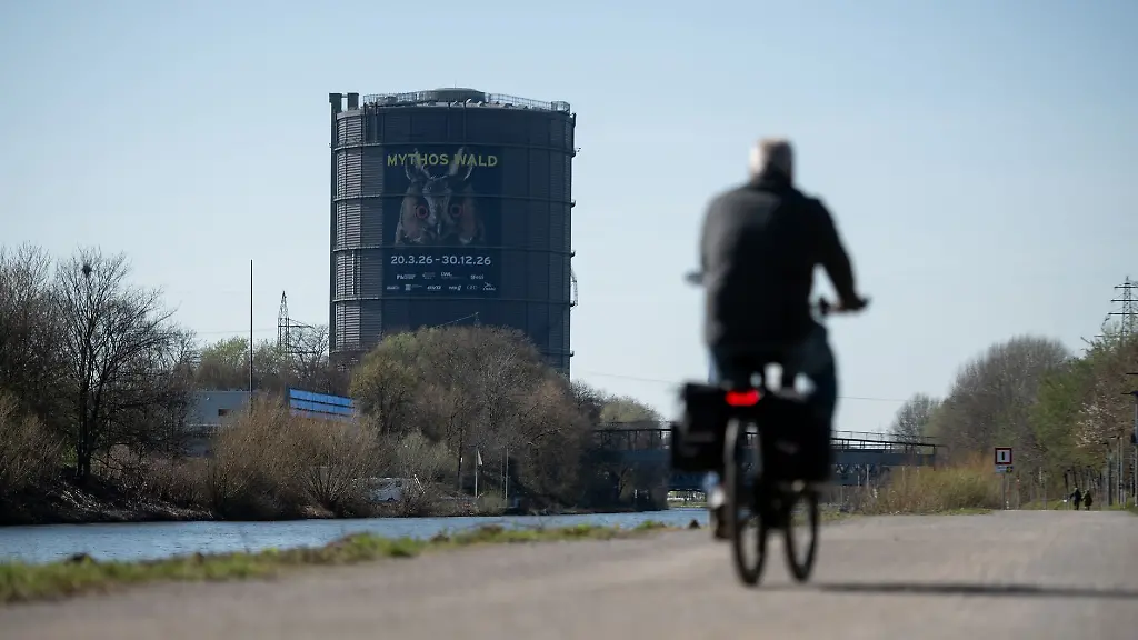 Wer die Ausstellung besucht, kann auch auf die 117,5 Meter hohe Aussichtsplattform des Gasometers steigen - mit einem Rundumblick über das Ruhrgebiet und den Rhein-Herne-Kanal.
