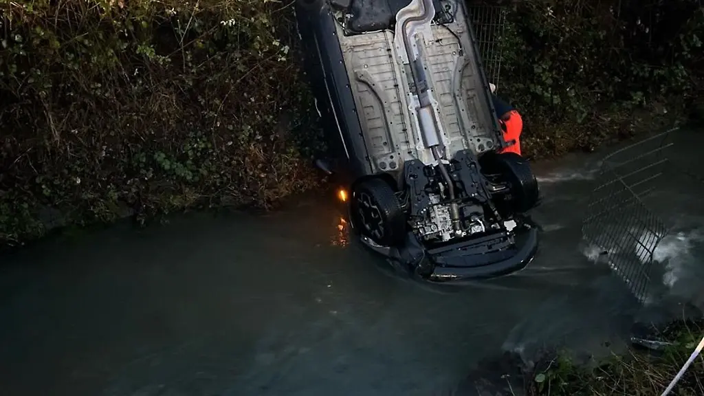 Das Auto durchbrach zwei Zäune, überschlug sich und landete auf dem Dach in einem Bach. Die Feuerwehr barg die 78-Jährige aus ihrem Auto, ein Rettungswagen brachte sie in ein Krankenhaus.