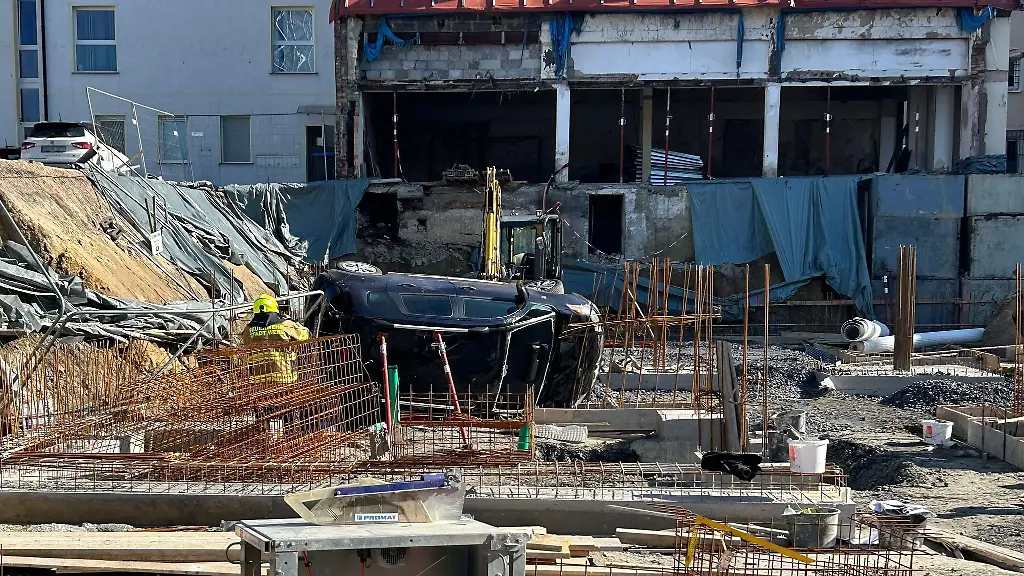 Beim Versuch, ihr Auto in eine Parklücke zu lenken, soll die Frau den angrenzenden Bauzaun durchbrochen haben und den Hang heruntergefahren sein. Fotos zeigten, dass das Fahrzeug auf der Seite zum Liegen kam.