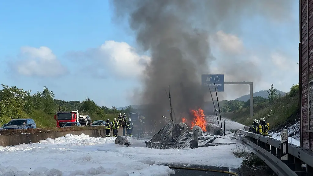 Der Fahrer hatte den Brand selbst bemerkt und sein Fahrzeug noch auf den Seitenstreifen gelenkt. Er blieb unverletzt. Bei den Löscharbeiten hatte sich Plastik von der Ladung mit Löschwasser und Schaum vermischt. Eine Spezialfirma musste nach Angaben der Polizei die Fahrbahn reinigen. Auch waren Fahrzeugteile durch das Feuer mit dem Asphalt verschmolzen.
