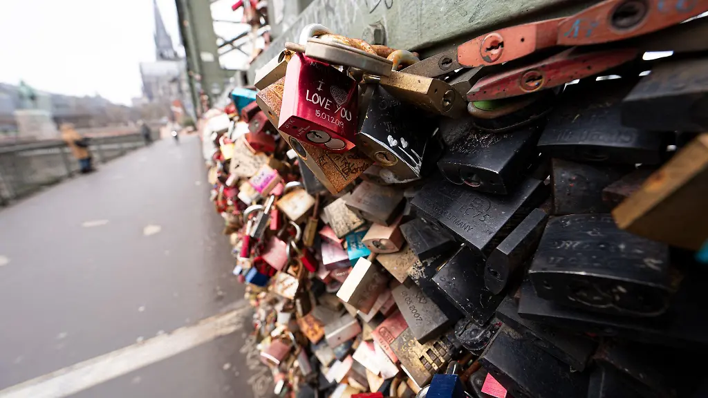Ein Klassiker ist natürlich die Hohenzollernbrücke in Köln: Mit einem wunderbaren Ausblick über Stadt, Rhein und den Kölner Dom können Paare über die Brücke spazieren. Viele bringen dabei seit Jahren ein Schloss - beispielsweise mit Namen und Datum beschriftet - an der Brücke an, als Zeichen ihrer Liebe.