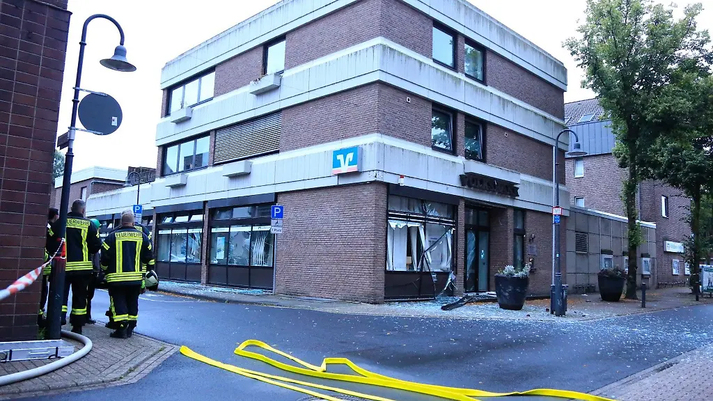 Kempen (dpa/lnw) - Unbekannte Täter haben in der Nacht zu Dienstag einen Geldautomaten in Kempen (Kreis Viersen) gesprengt. Bei der Explosion in einer Bankfiliale seien der Automat und der Vorraum der Bank erheblich beschädigt worden, teilte die Polizei mit. Zudem stießen die Einsatzkräfte vor Ort auf ein unbekanntes Sprengmittel, wie eine Polizeisprecherin am Dienstagmorgen sagte. Es sei am Morgen abstransportiert und von Experten kontrolliert gesprengt werden.