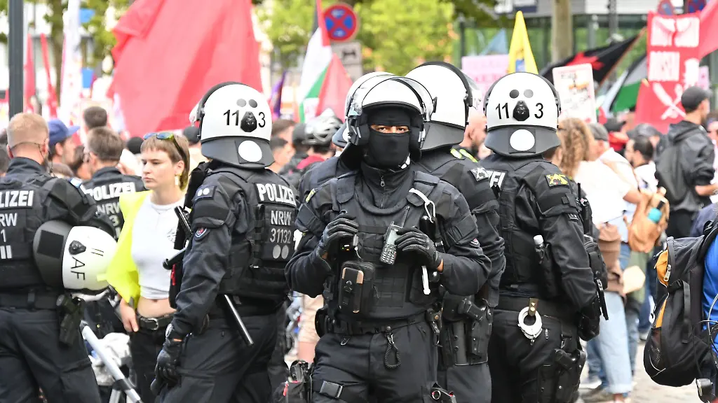 Bei dem Marsch durch die Kölner Innenstadt war die Polizei nach eigenen Angaben mit starken Kräften präsent. Insgesamt setzte sie am Samstag 1.600 Polizistinnen und Polizisten in Köln ein.
