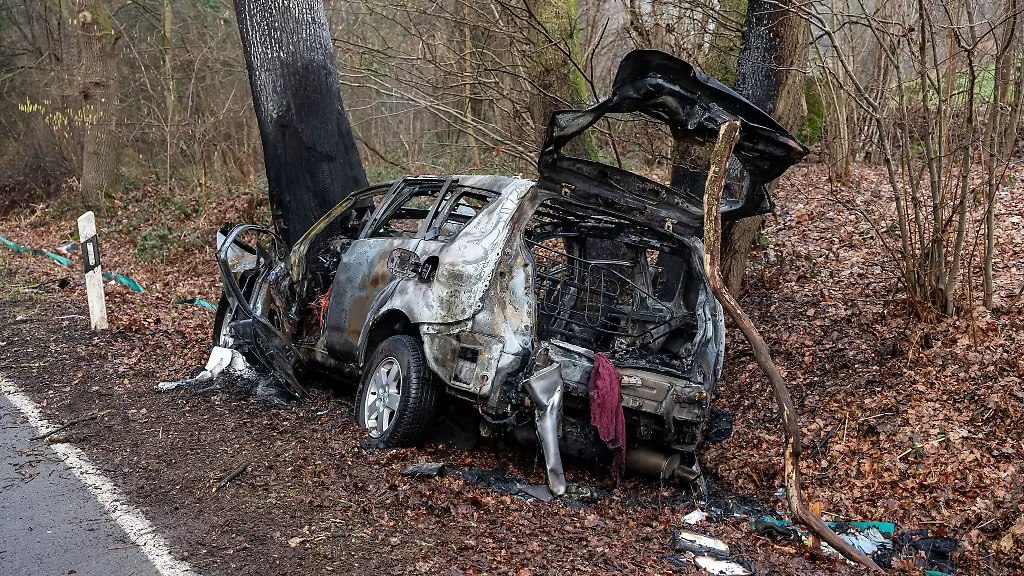 Ein junger Mann verliert die Kontrolle über sein Auto und prallt gegen einen Baum. Kurz darauf geht das Fahrzeug in Flammen auf.