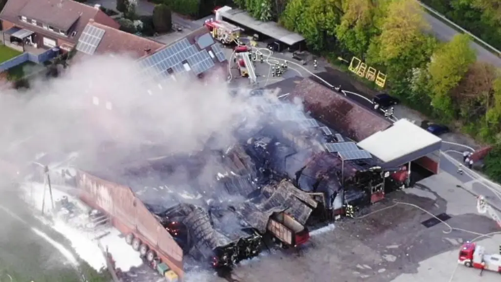 Drei Mitarbeiter hätten noch vergeblich versucht, die Flammen am Montagmittag zu löschen, hieß es. Bei Eintreffen der Feuerwehr habe die Betriebshalle bereits vollständig in Flammen gestanden. In der Halle waren nach Polizeiangaben chemische Stoffe und Gasflaschen gelagert. Aufgrund der starken Rauchentwicklung wurden Anwohner aufgerufen, Fenster und Türen geschlossen zu halten. Auch wenn der Brandgeruch über Stunden in der Luft lag, waren die Ergebnisse der Luftmessungen nach Angaben der Feuerwehr unauffällig. Insgesamt waren 400 Einsatzkräfte vor Ort. Die Schadenshöhe war zunächst unbekannt.