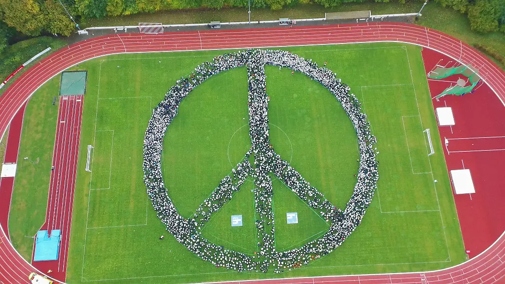 Nordrhein-WestfalenPeace-Zeichen aus 4.000 Menschen: Rekord in Menden gelingt