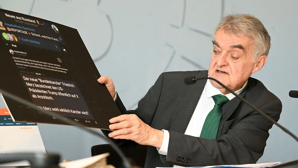 Im Bereich der ausländischen Akteure trete vor allem Russland "zunehmend robuster auf". Reul präsentierte Fälschungen namhafter Nachrichtenseiten mit Falschmeldungen, mit denen Stimmung gegen stärkere Verteidigungsanstrengungen gemacht wird. "Mit falschen Meldungen kann man das Bewusstsein verändern", sagte Reul.