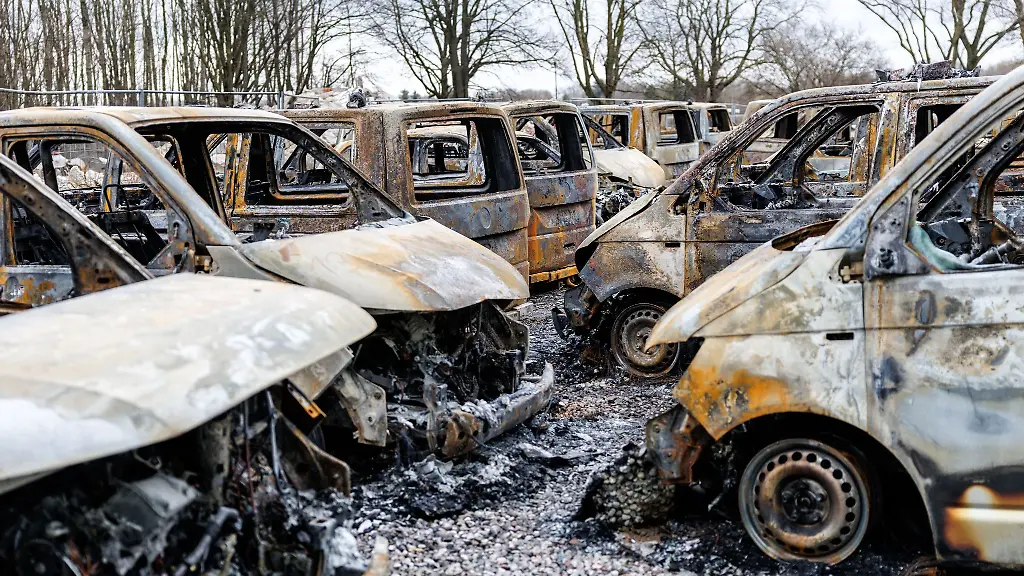 Düsseldorf (dpa/lnw) - 10 Autos ausgebrannt, 16 beschädigt: Das ist die Bilanz eines Brandes auf einem Parkplatz in Düsseldorf. Die Polizei geht nach Untersuchungen vor Ort von Brandstiftung aus und leitete entsprechende Ermittlungen ein, wie ein Polizeisprecher sagte.